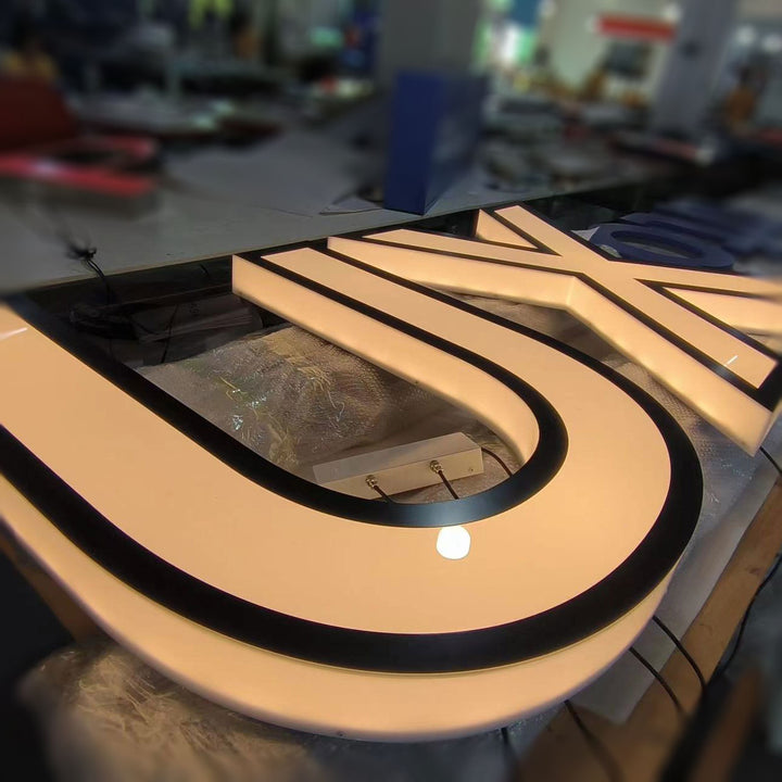 Backlighting, also known as reverse lighting, offers another dimension to your signage. By placing the light source behind the letters, a glowing halo effect is created, making the characters appear to float above the mounting surface. This option is particularly appreciated for its modern and sleek look.